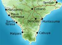 To the south of this beach is the more popular Sta Teresa and Mal Pais. your very close neighbours there are Tom Brady and Gisele Bunchen. Montezuma a very popular tourist destination - with dancing, bars, internet cafes and a nightly movie is about 9 miles away. El Santuario is perfectly situated for seclusion, peace and quiet with plenty to do close at hand. Watch this walking tour video of The land, the Casa and the Sacred Ceibo: